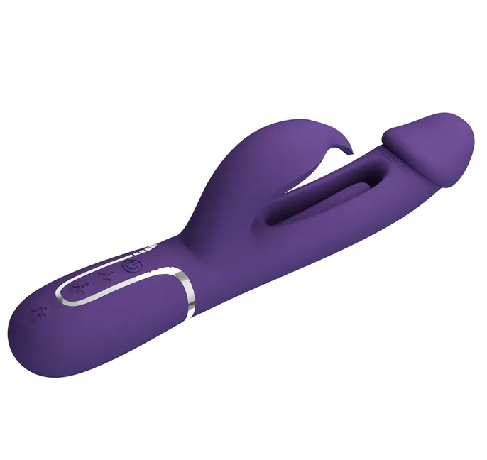 Experience next-level pleasure with this powerful rechargeable rabbit vibrator, designed with dual motors that you can control independently for endless combinations of bliss. The soft, sculpted rabbit on the clitoral arm flicks, teases and stimulates your most sensitive hotspot with precision, while the swinging tongue positioned mid-shaft adds an irresistible extra layer of sensation during play.